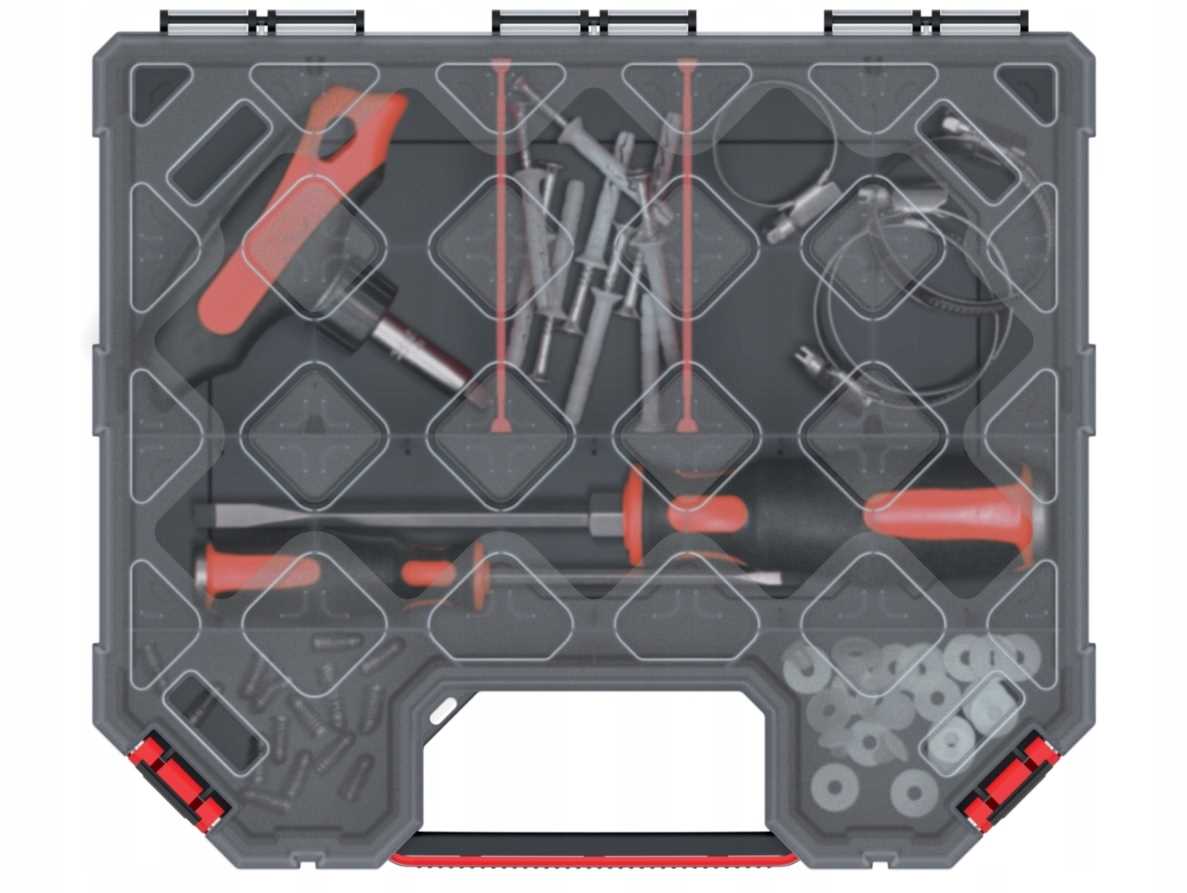 TIGER CASE KTC30256S – Zestaw organizerów narzędziowych, które zestawione są ze sobą w użytecznej oraz poręcznej walizce. Produkt idealny dla zwykłych majsterkowiczów, jak i dla profesjonalnych przedsiębiorstw. Skrzynka, która perfekcyjnie zorganizuje każdą pracę i dodatkowo zadba o porządek.