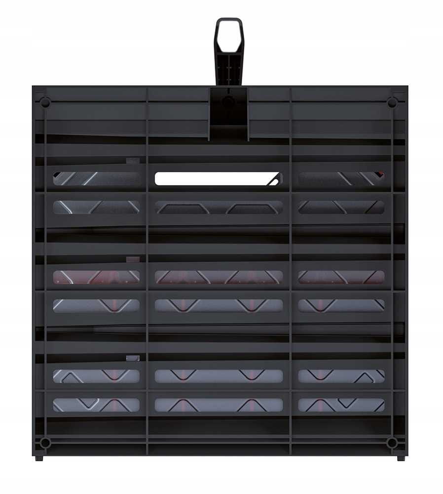 - Zabezpieczenie zapadkowe / Mocne szyny – bezpieczny transport, ochrona przed przypadkowym wypadnięciem organizerów