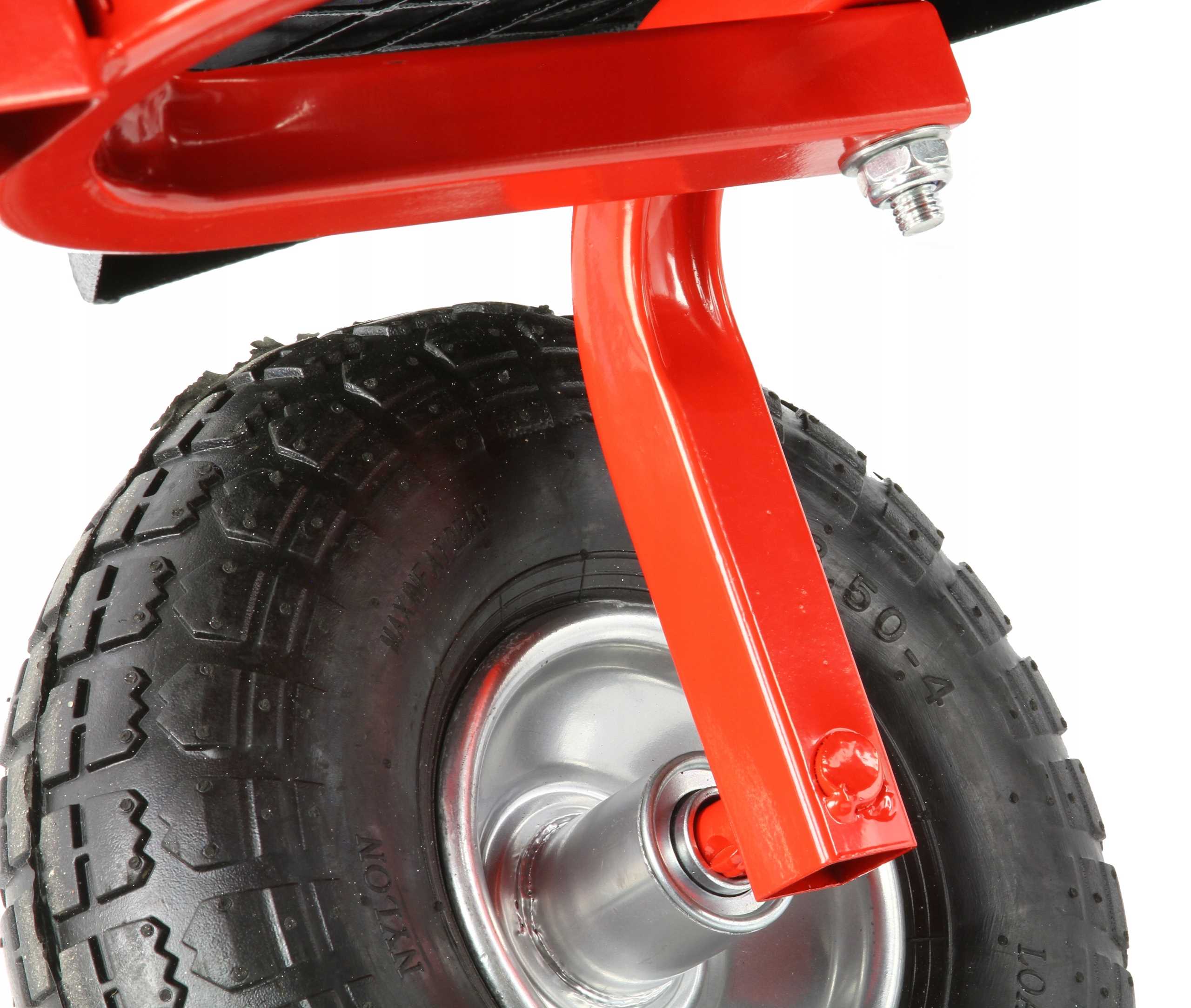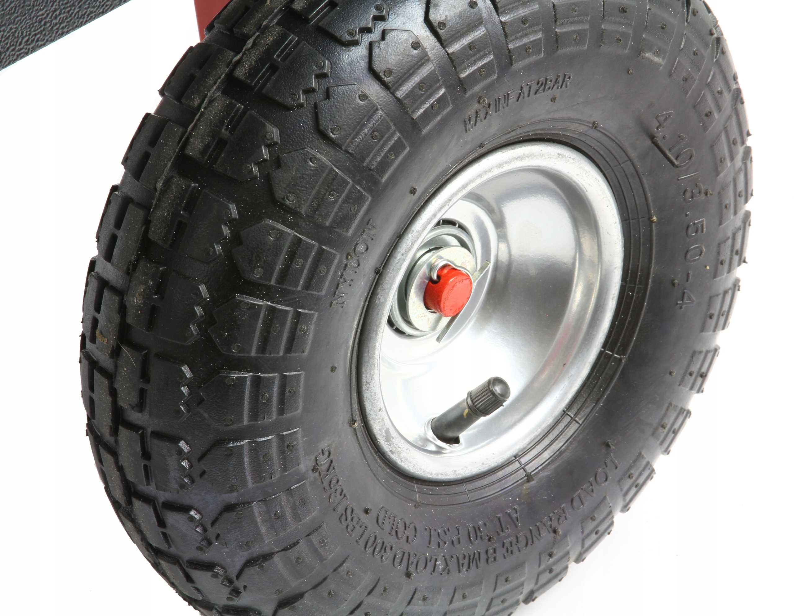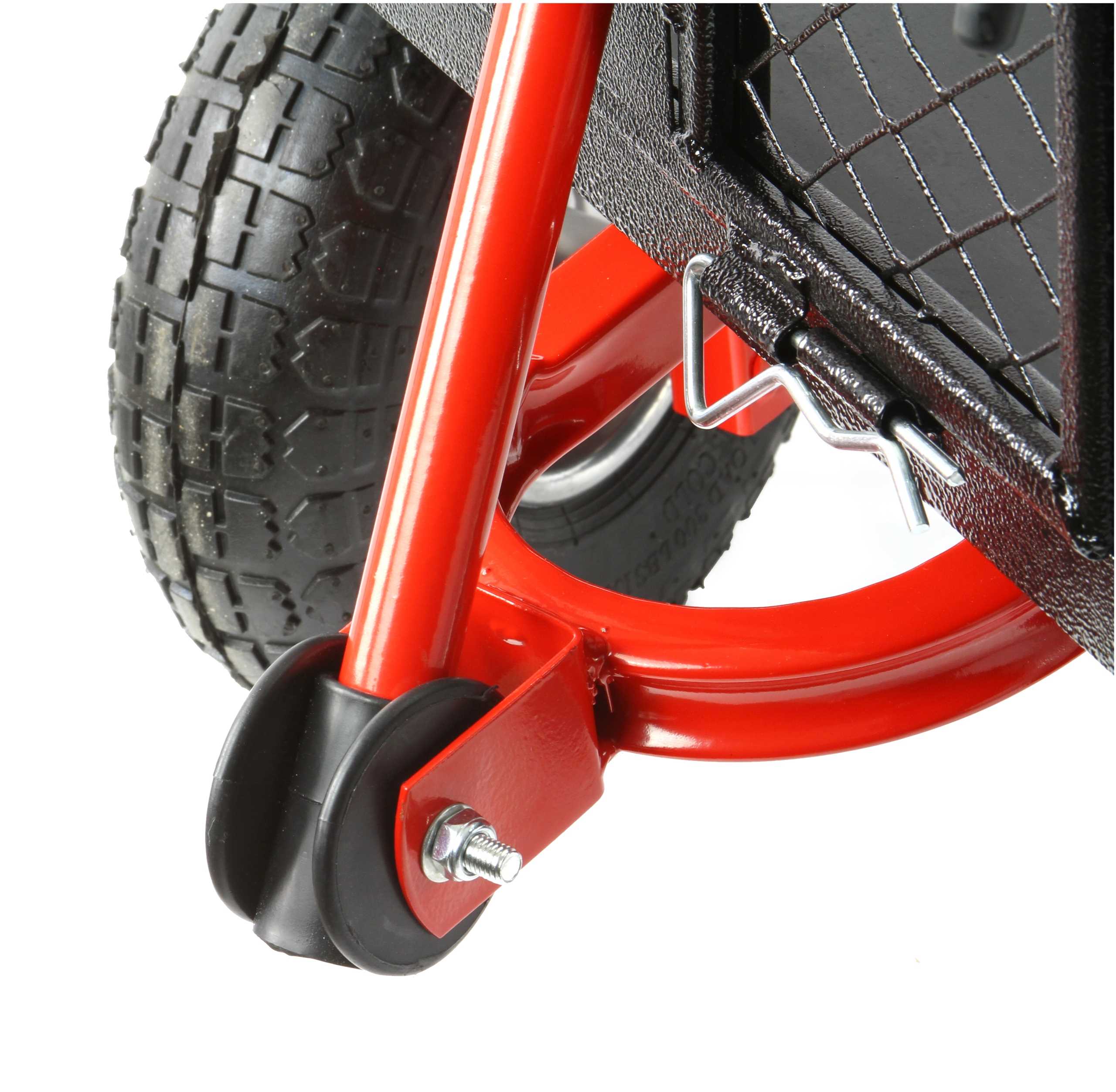- duże 26 cm pompowane koła podwójnie łóżyskowane z bieżnikiem pozwalające przewozić ładunek w trudnym terenie
