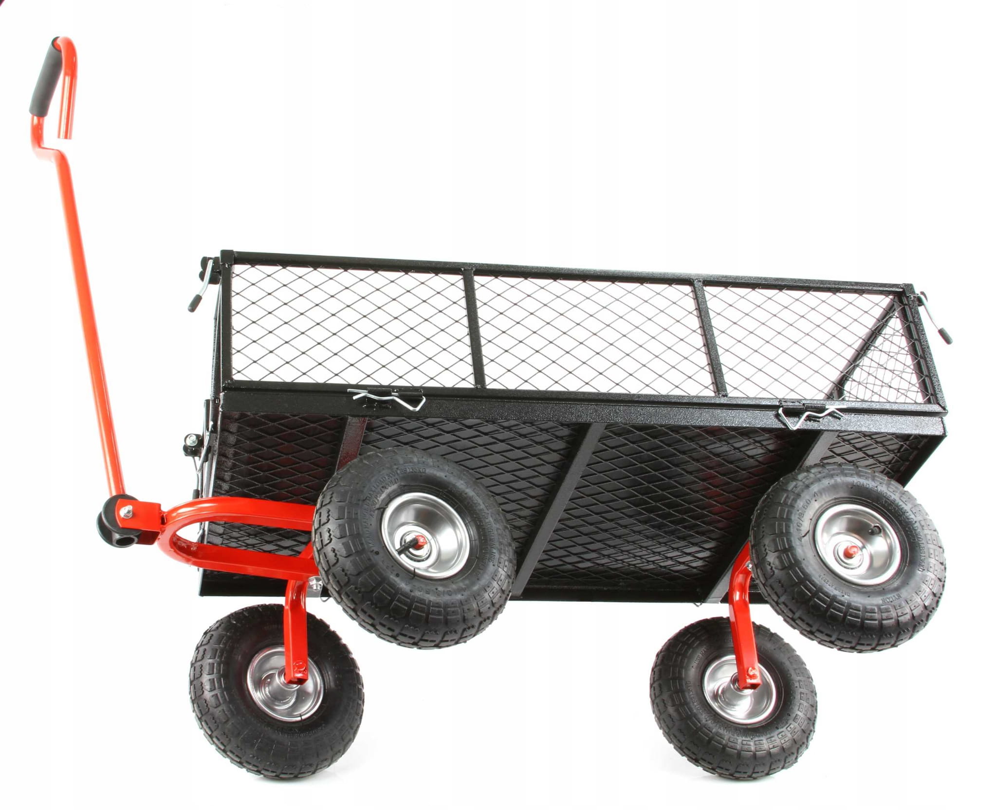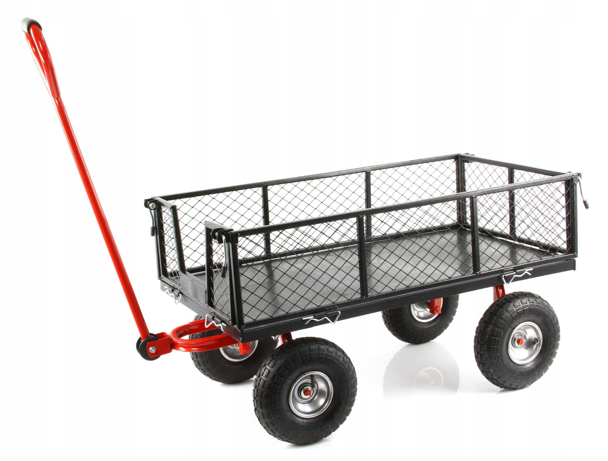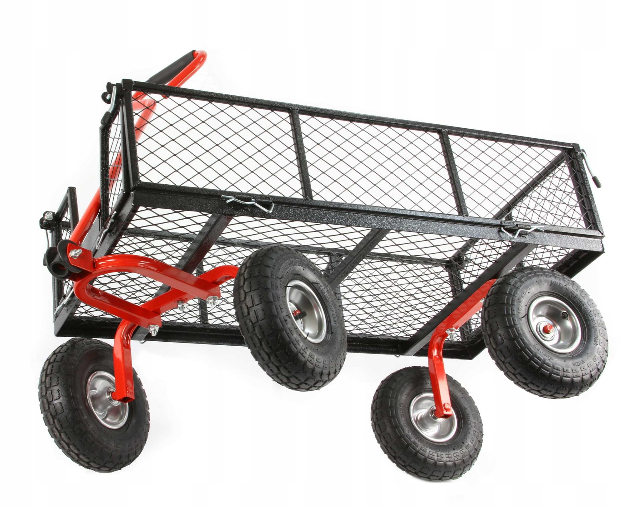 - duże 26 cm pompowane koła podwójnie łóżyskowane z bieżnikiem pozwalające przewozić ładunek w trudnym terenie