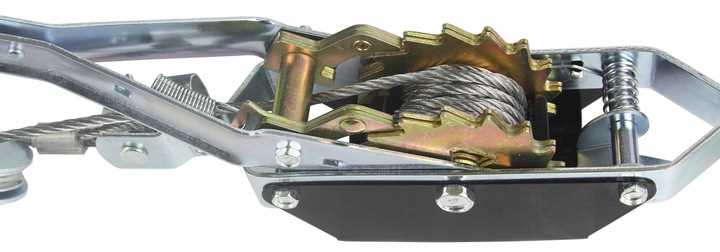 Wyciągarka Linowa wyposażona jest w podwójny mechanizm zapadkowy, urządzenie wykonane z wysokiej jakości, trwałych materiałów o odpowiedniej wytrzymałości (stal konstrukcyjna oraz odlewane haki ze sprężynami zwrotnymi) co sprawia, że jest to mocna konstrukcja zapewniająca długotrwałą i bezpieczną prace.