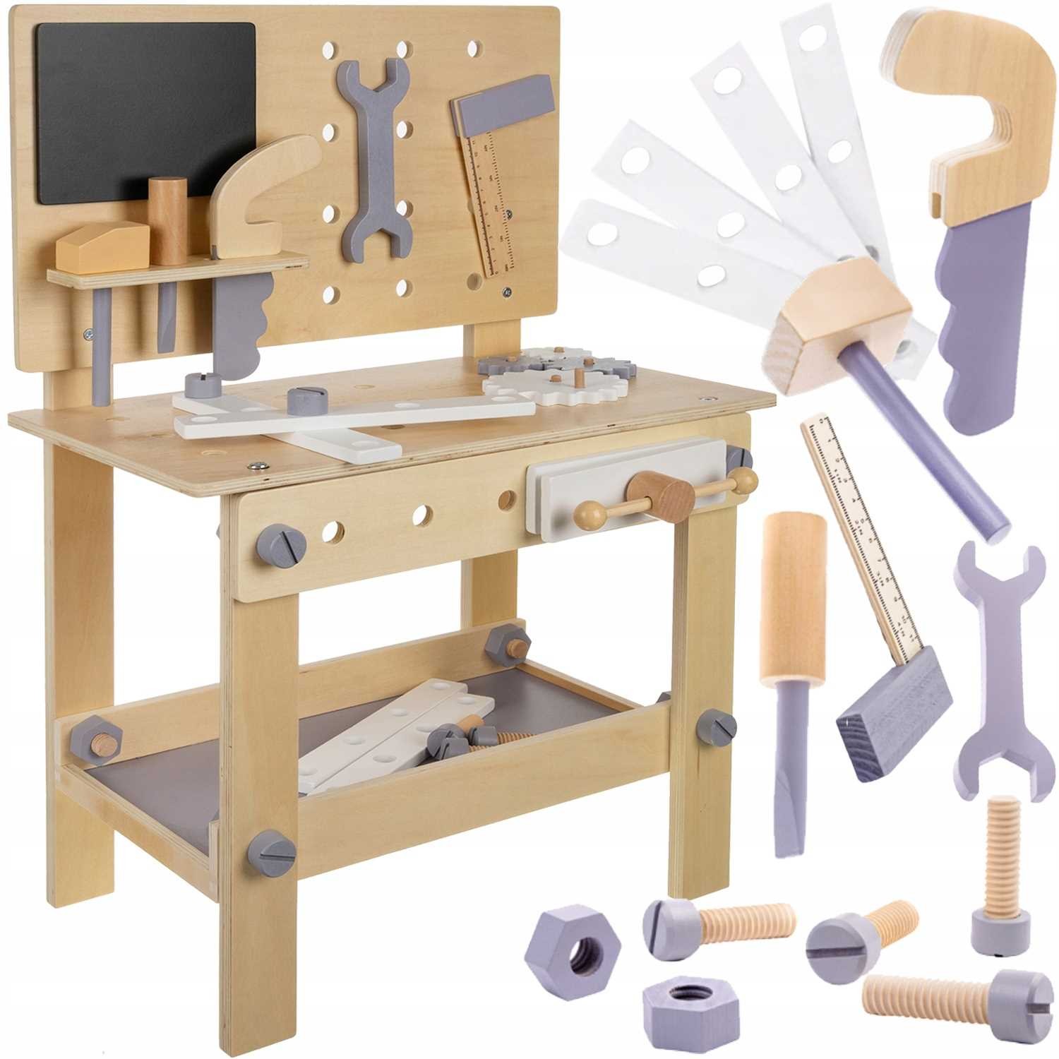 ✔️ trwałość - warsztat i drewniane narzędzia są wyjątkowo trwałe i odporne na intensywną zabawę, dzięki solidnej konstrukcji przetrwają wiele godzin kreatywnej zabawy