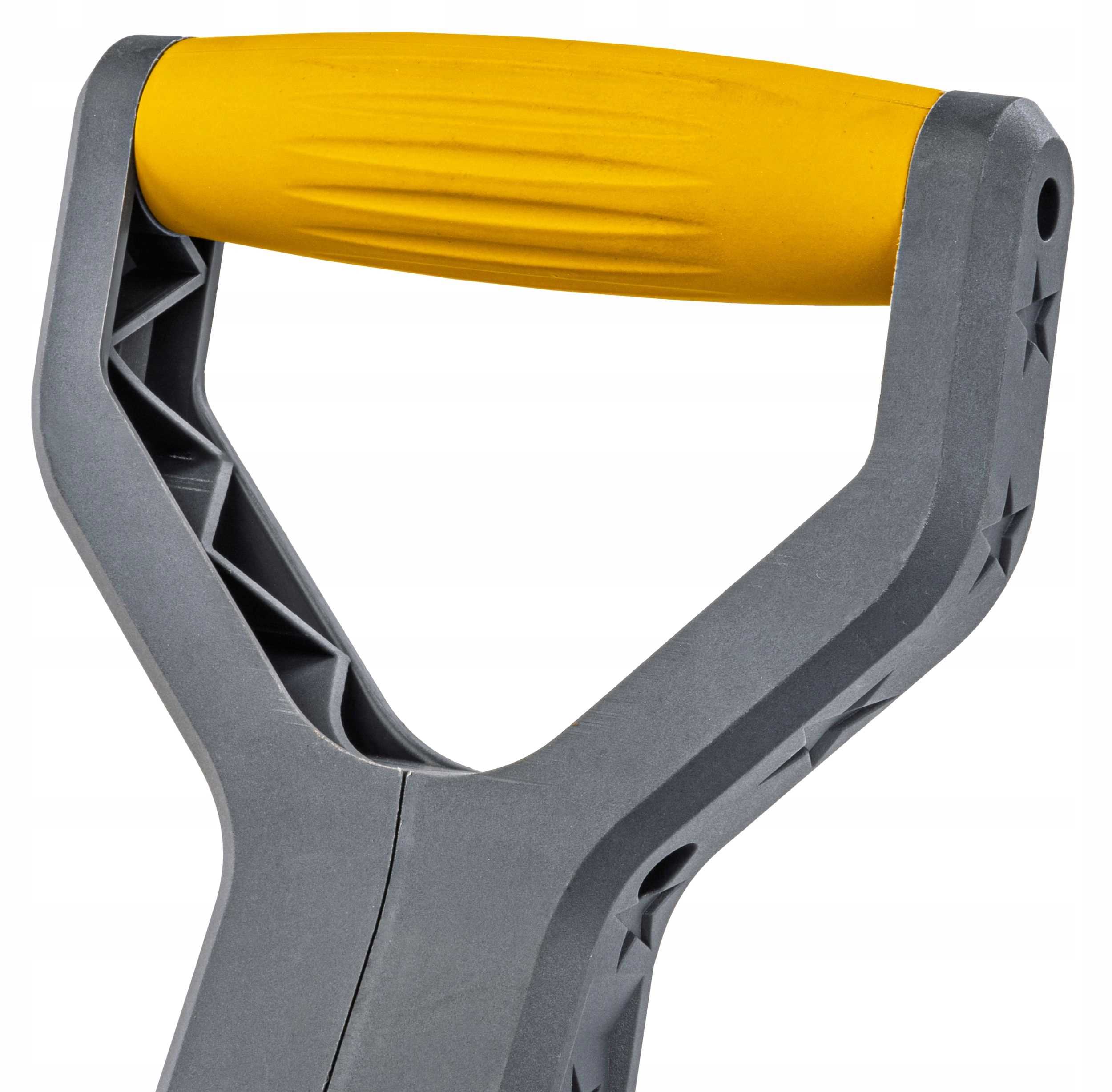 Duży uchwyt oraz antypoślizgowa, ogumowana rękojeść zapewniają pewny chwyt i łatwość prowadzenia narzędzia. Dzięki temu praca jest bardziej precyzyjna i mniej męcząca, nawet podczas długotrwałego użytkowania.