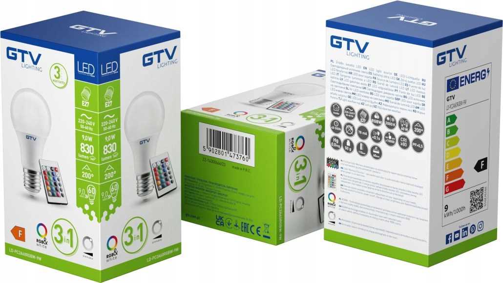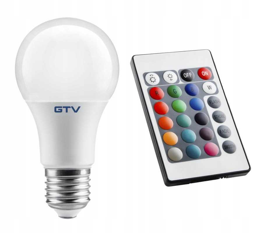 ŻARÓWKA LED RGBW WIELOKOLOROWA NA PILOTA 830lm 3000K E27 9W GTV