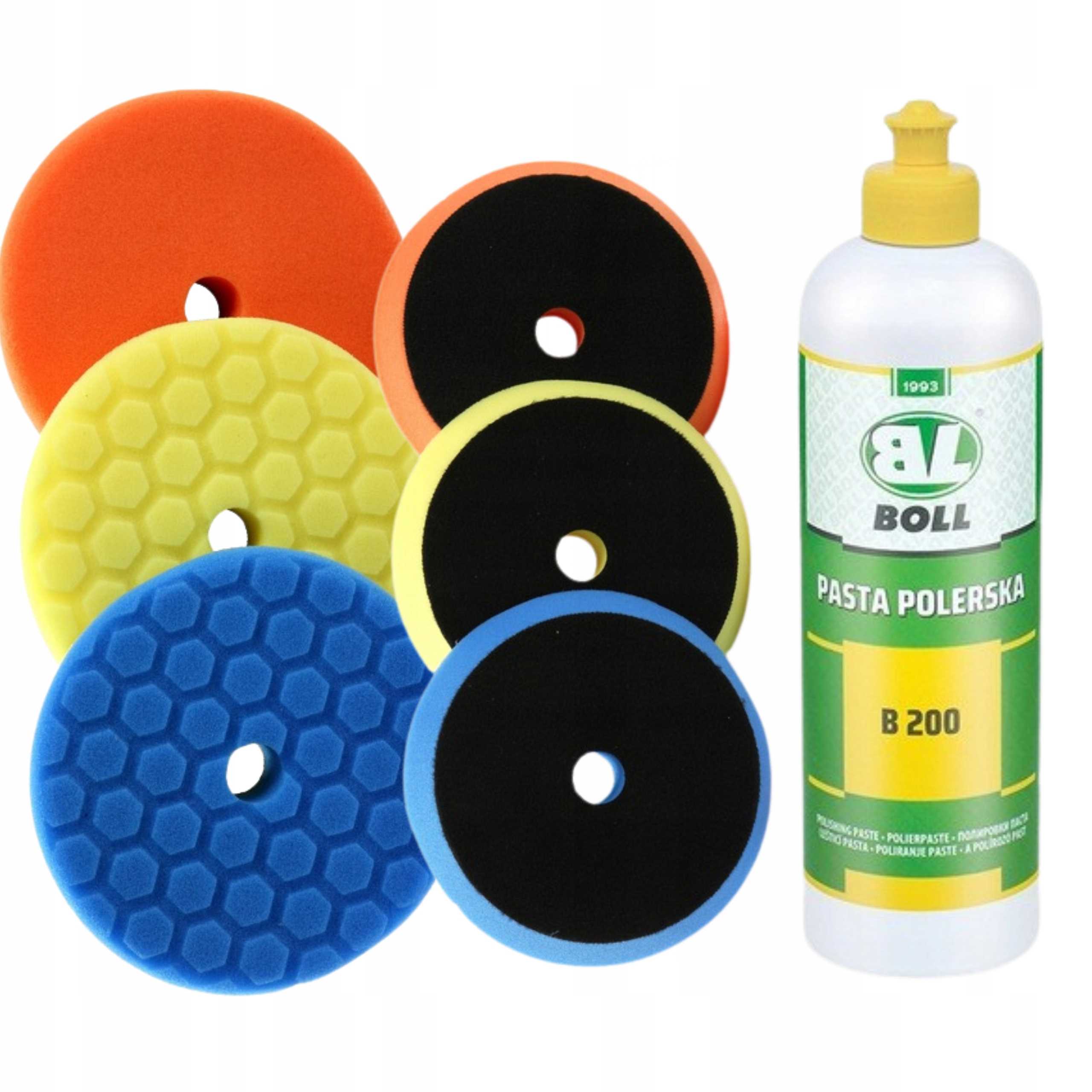 ZESTAW GĄBEK PADÓW POLERSKICH RZEP 150mm + PASTA POLERSKA B200 250ml BOLL