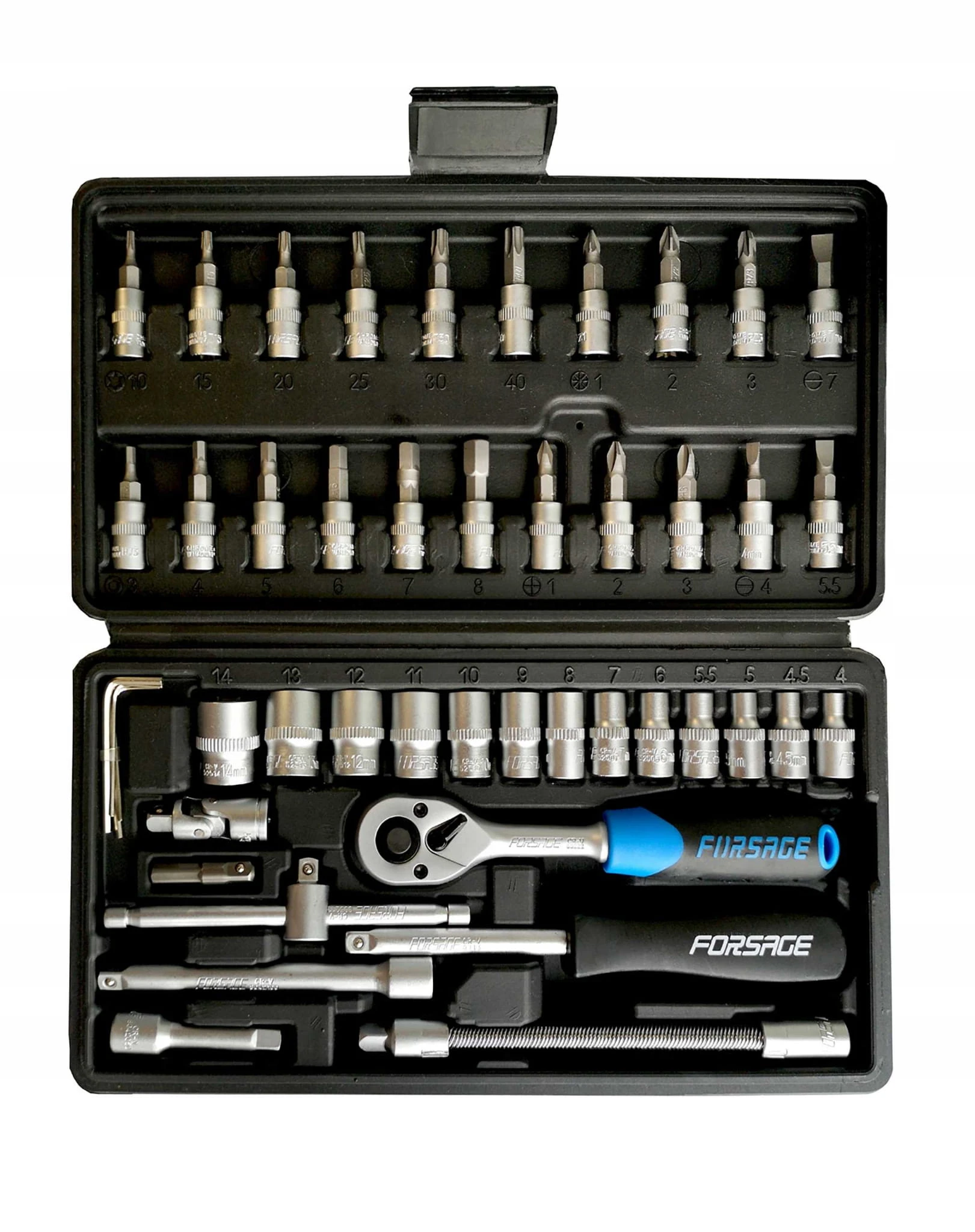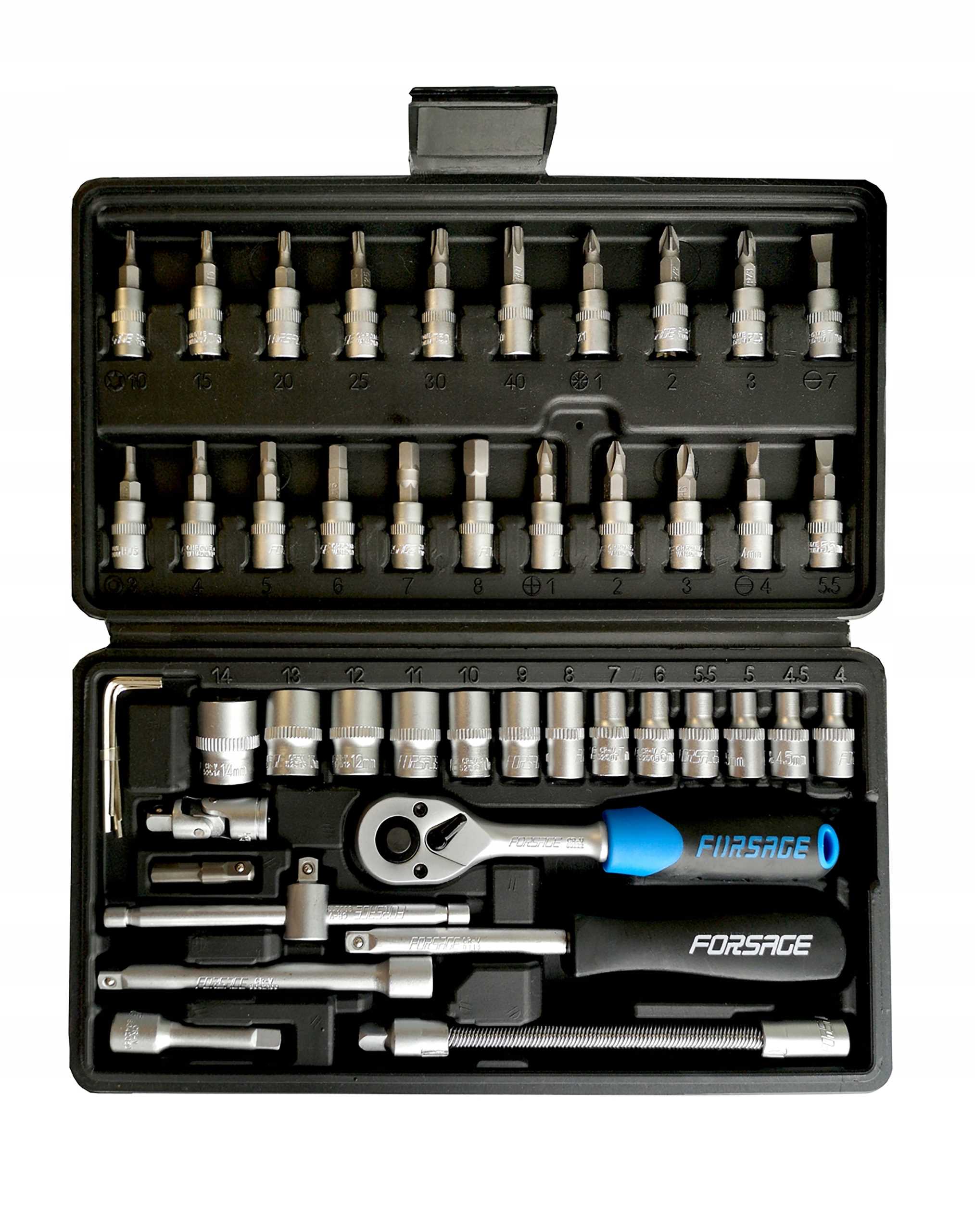 ZESTAW KLUCZY NASADOWYCH 1/4" 46el. (6-kątnych) (4-14mm) TORX, HEX, PZ, PH