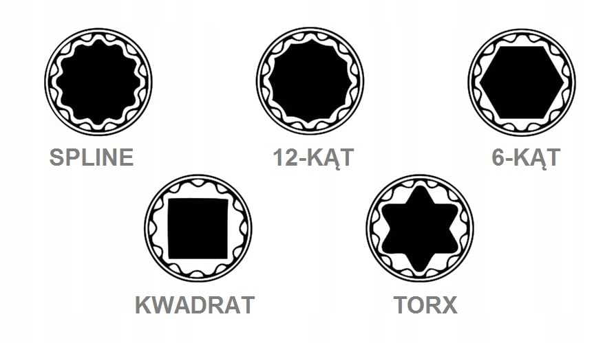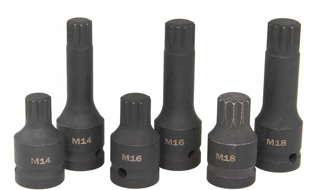 NASADKI UDAROWE KLUCZE TRZPIENIOWE SPLINE M14 M16 M18 1/2'' 6 SZT.
