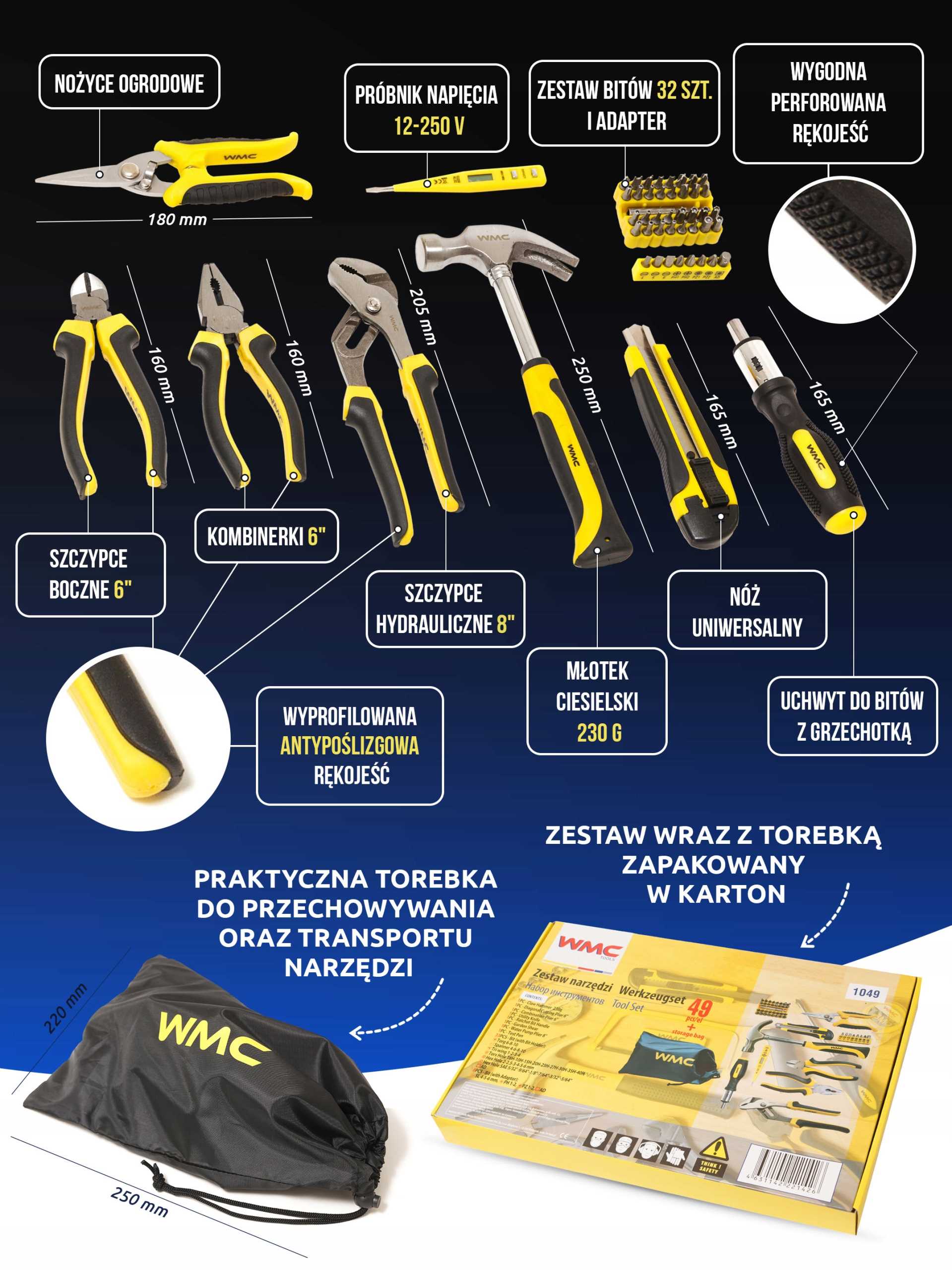 ZESTAW KOMPLET NARZĘDZIOWY NARZĘDZIA 49EL KLUCZE WKRĘTAKI BITY WMC TOOLS