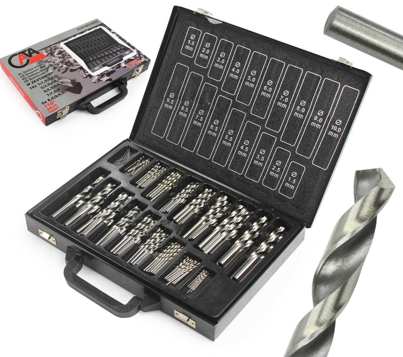- Liczba rodzajów wierteł w zestawie: 19 szt