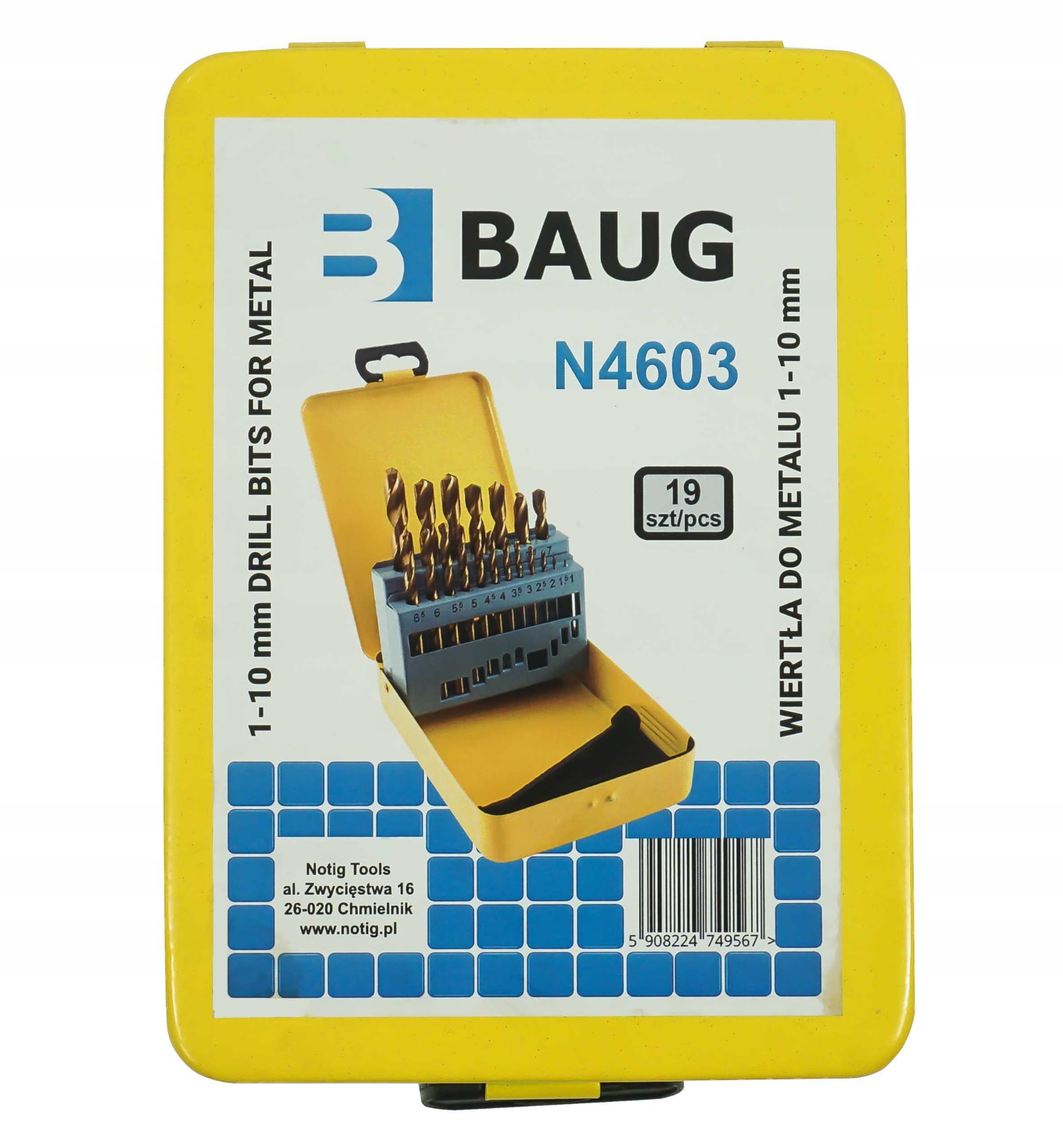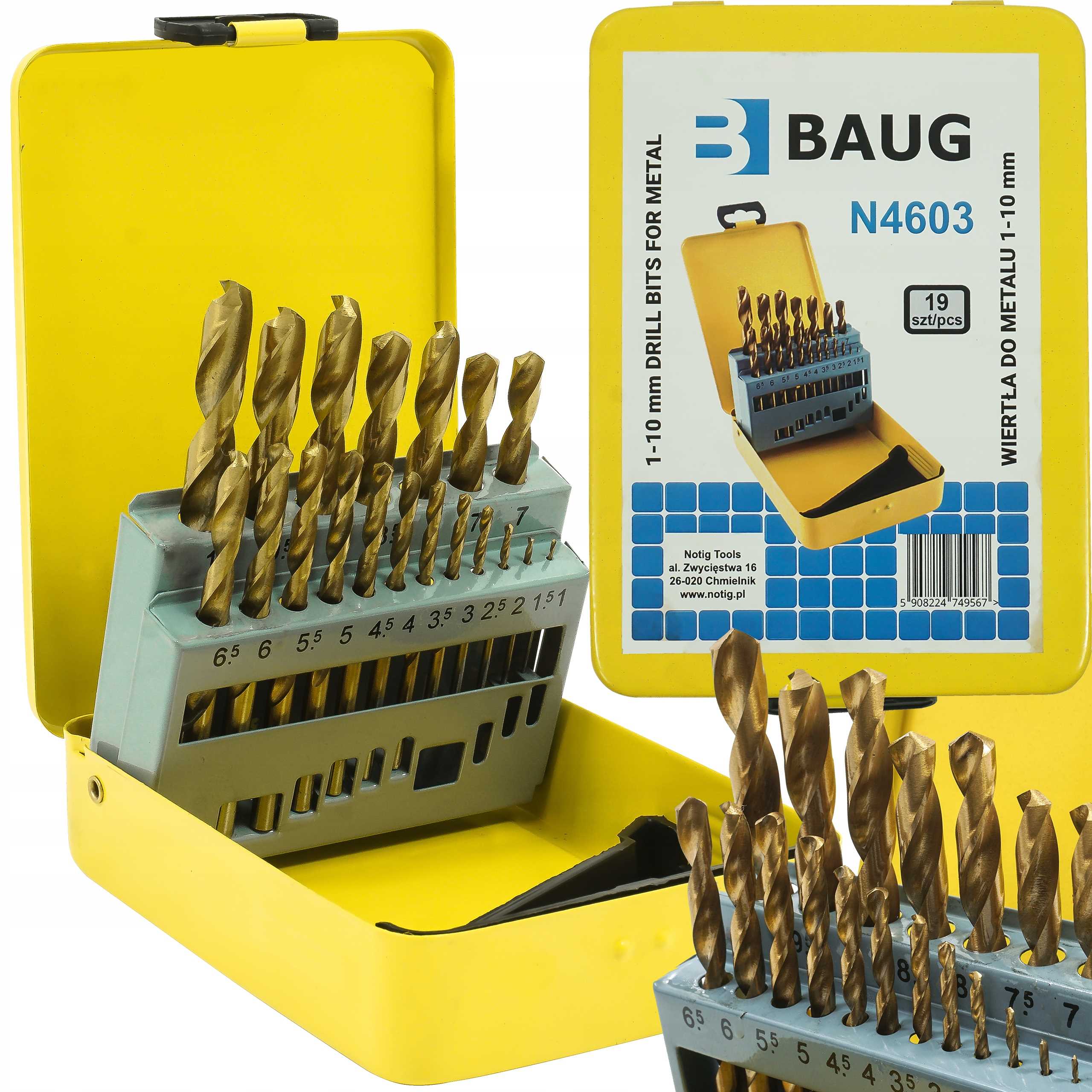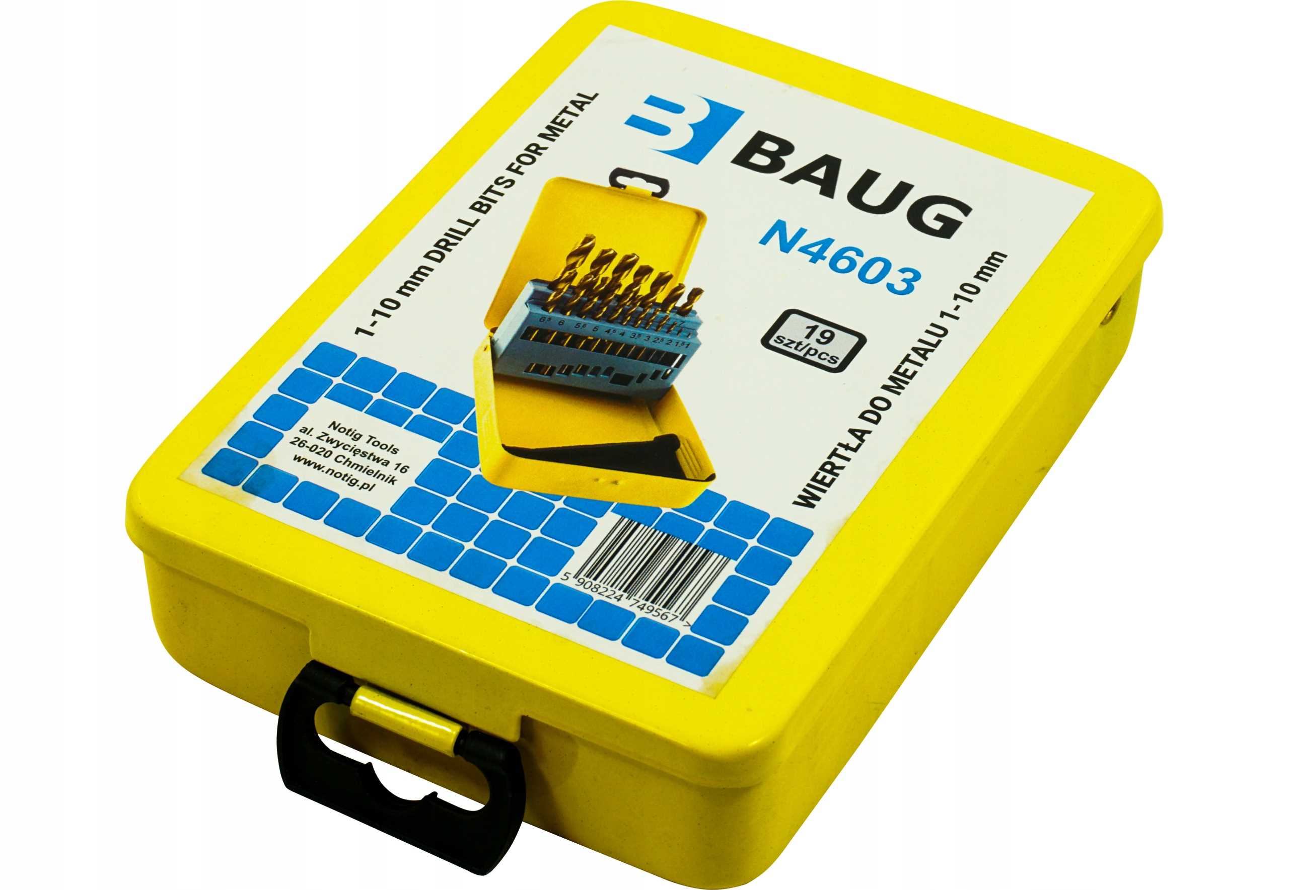 ZESTAW WIERTEŁ WIERTŁA DO METALU 1-10mm 19SZT. HSS NOTIG